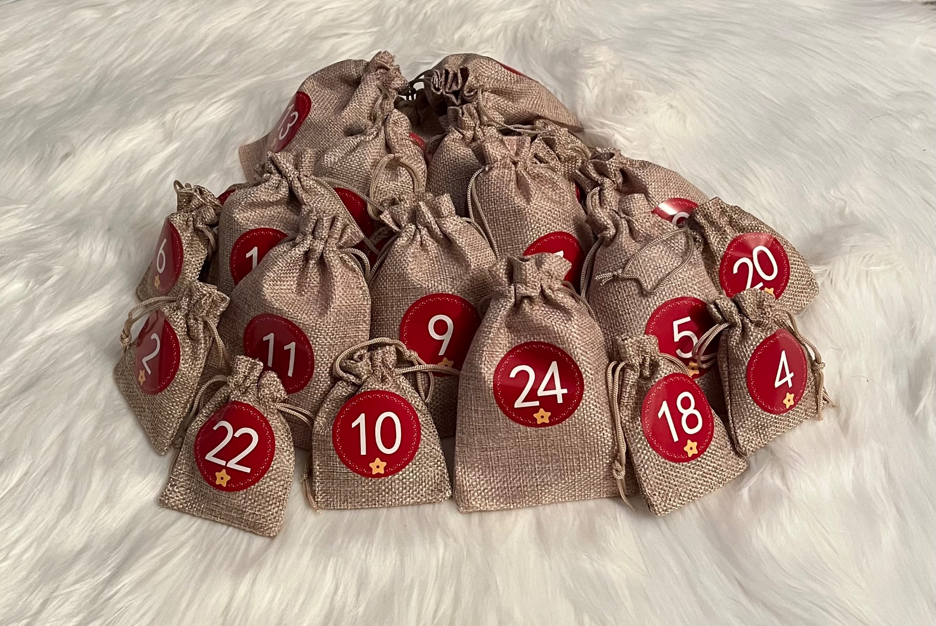 24 jutepåsar 3 bröstselar storlek medium3 paracordkoppel Berlocker, lyckoänglar, kaningodis m.m